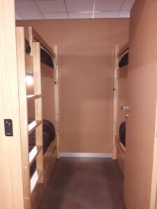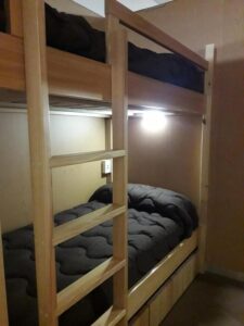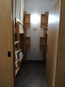El albergue dispone de habitaciones compartidas y camarotes con literas, cada una con luz de lectura, enchufe y ropa de cama y baño compartido con ducha y secador de pelo.